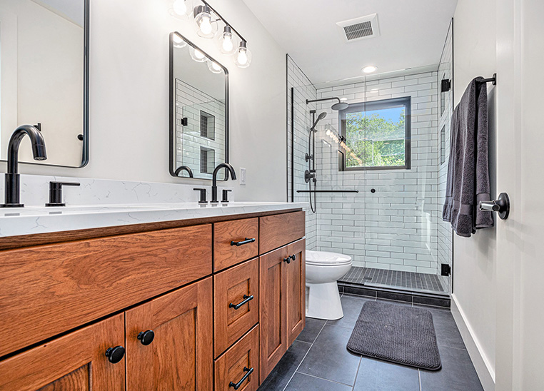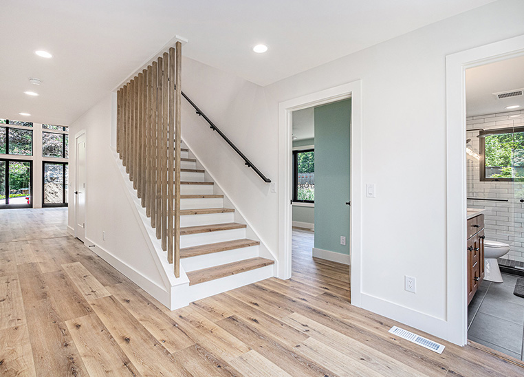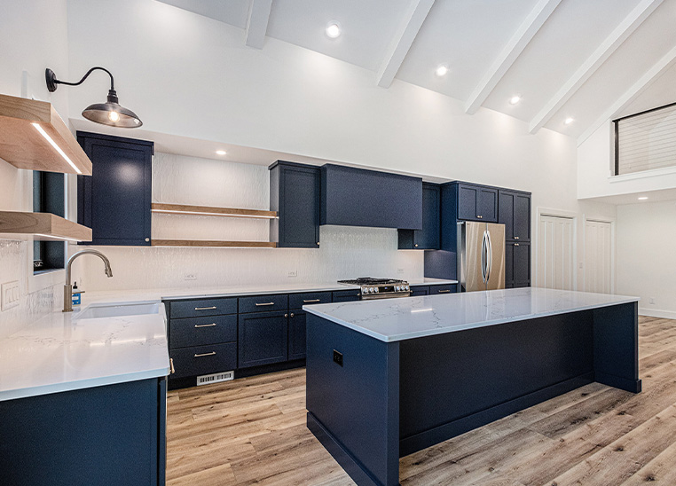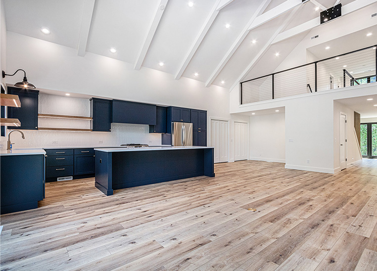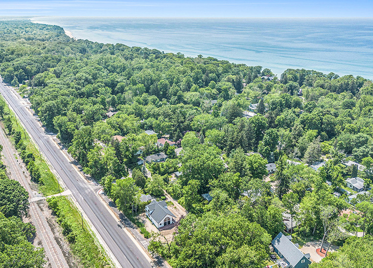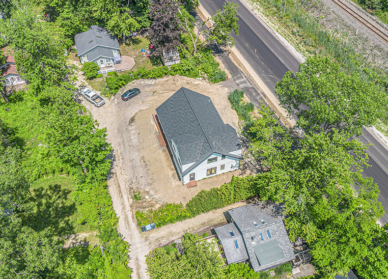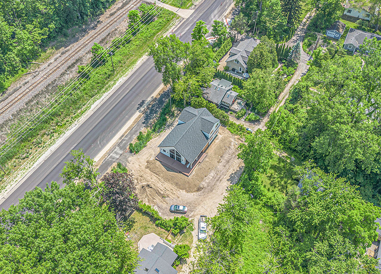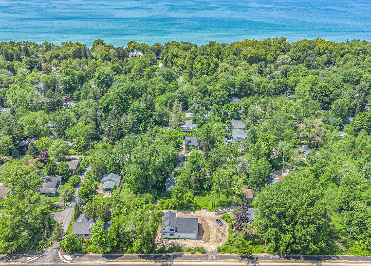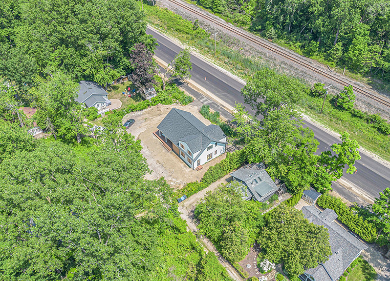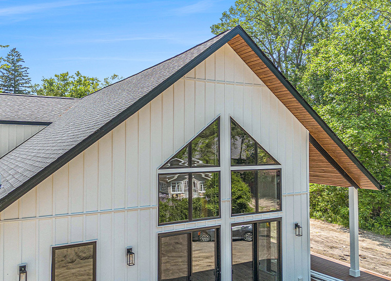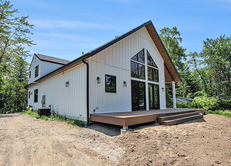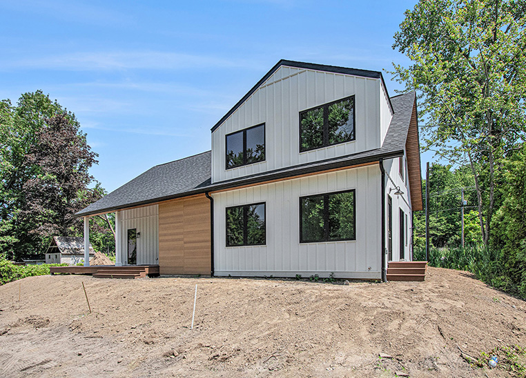 This custom modern farmhouse in Lakeside, Michigan, was designed and built by 2C Construction as a serene retreat within walking distance of Lake Michigan. Completed over ten months, the home features vaulted ceilings, exposed beams, and expansive windows that fill the open-concept living space with natural light. Balancing craftsmanship with efficiency, 2C Construction overcame design and structural challenges to deliver a refined, energy-efficient home that seamlessly blends contemporary style with timeless warmth.